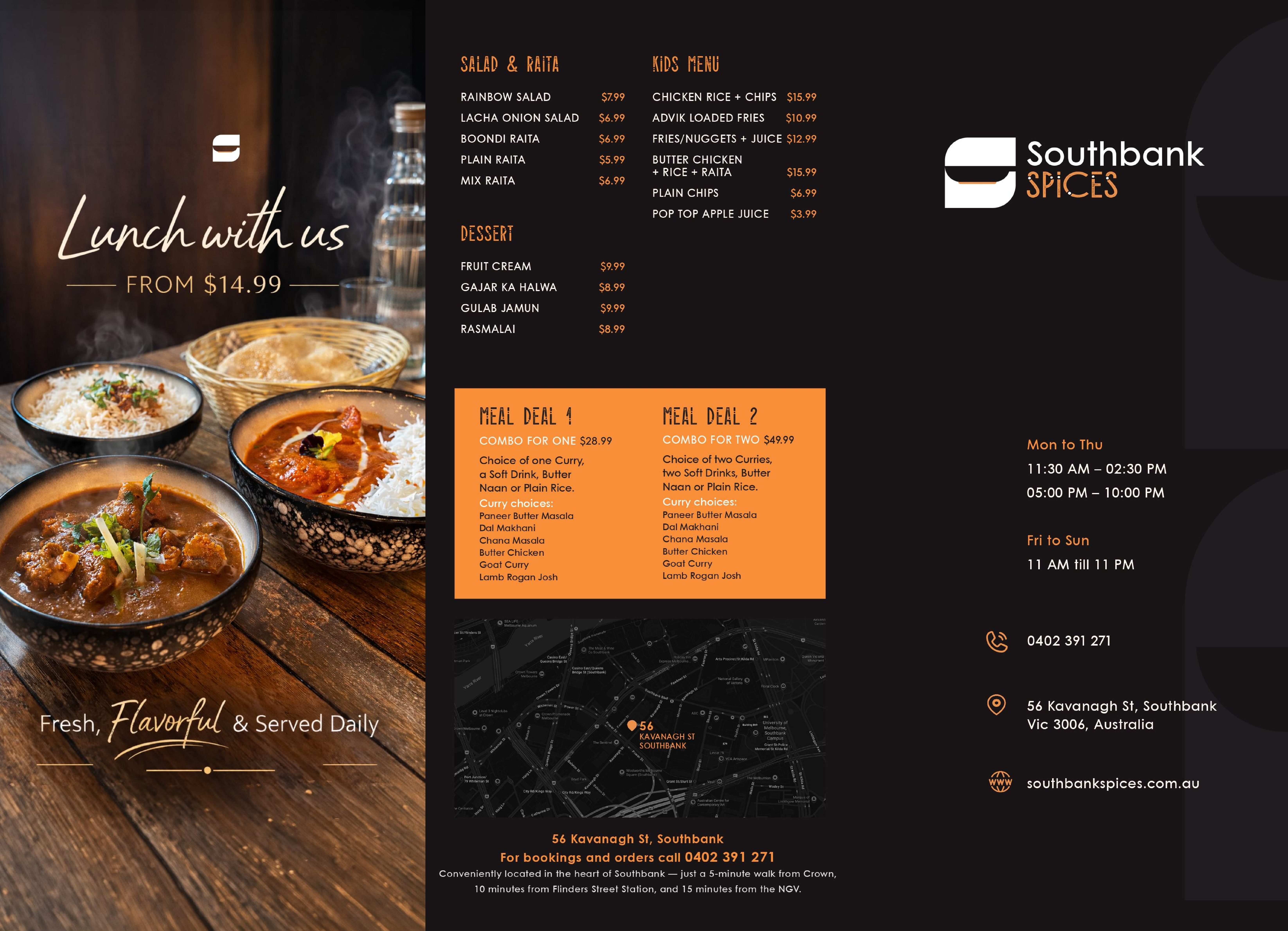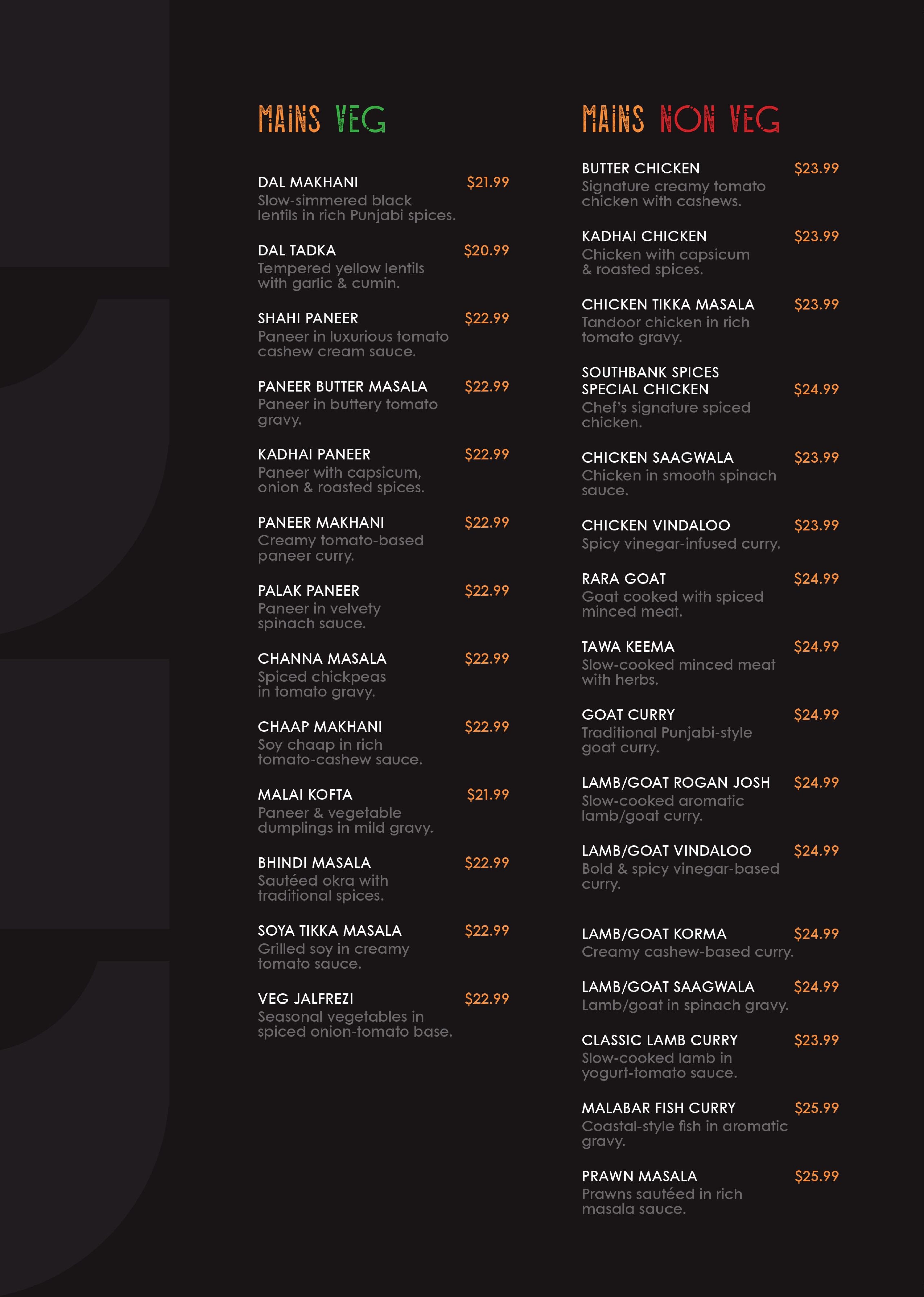 Southbank Spices began as a quiet dream shared between two lifelong friends—shaped by memories, passion and the lingering aromas of home. But this dream was never just about opening a restaurant; it was about creating an experience for you. A place where tradition is elevated, elegance feels effortless, and every moment invites you to slow down and savour.