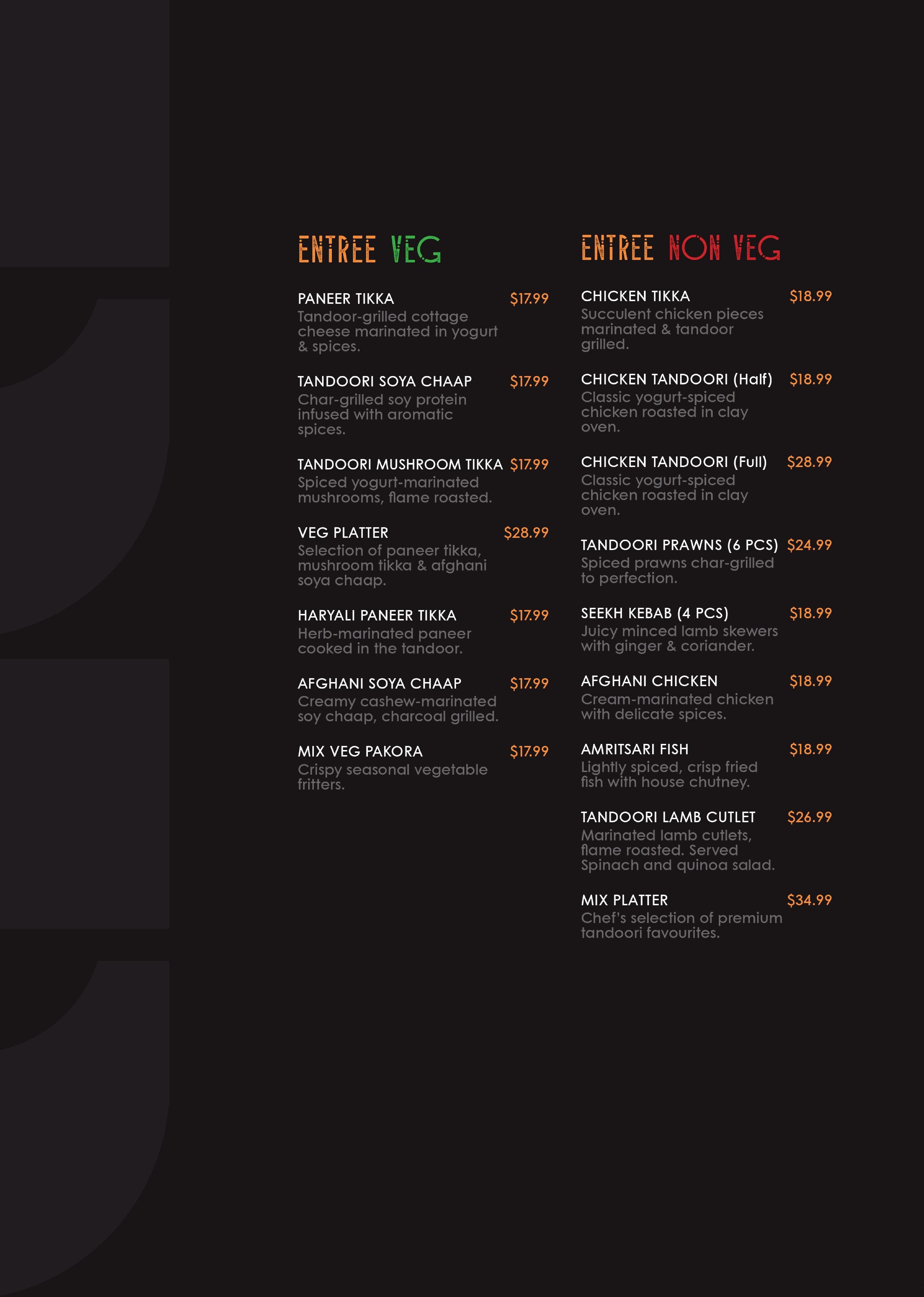 Our mission is to offer Melbourne, A refined Indian dining experience where bold flavors, graceful artistry, and a welcoming spirit meet without compromise. Inspired by India’s rich culinary heritage and guided by a pursuit of perfect balance, we have reimagined classic flavors for the modern palate.
